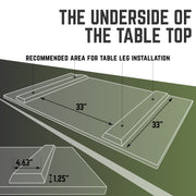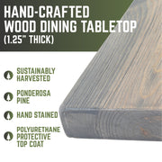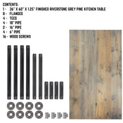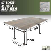 - Chaque ensemble de table à manger contient un plateau de table en bois récupéré de 36 po x 60 po x 1,25 po avec des bords coussinés et un ensemble de pieds en tube « H »