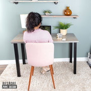 Notre bureau en bois avec pieds en métal dégage une ambiance moderne qui apportera du style à n'importe quelle pièce. Que ce soit comme bureau d'ordinateur à la maison, comme bureau d'étude dans une chambre ou une bibliothèque, ou comme bureau de travail en entreprise, ce bureau est élégant et sophistiqué. Optimisez votre productivité avec un bureau à monter soi-même, facile à construire. Facilitez le nettoyage grâce à des matériaux et des finitions durables. Essuyez simplement le plateau et les pieds avec un chiffon sec ou humide pour éliminer la poussière et les éclaboussures. Les meubles peuvent être à la fois sophistiqués et durables. Nous avons apporté un soin particulier à l'assemblage de cet ensemble et tenons à vous assurer que vous obtenez un produit de haute qualité, fabriqué avec de l'acier industriel véritable et du bois d'œuvre nord-américain authentique. Tous nos bureaux sont séchés au four. Ce procédé prévient les déformations, les fissures et la moisissure. Le bois est ensuite fini à la main selon notre procédé exclusif en plusieurs étapes pour une teinte d'une profondeur exceptionnelle.