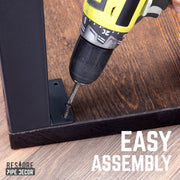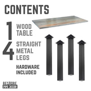 - Le kit est livré avec quatre pieds en métal noir et un plateau en bois mesurant 48 pouces L x 24 pouces l x 1 ¼ pouces H