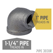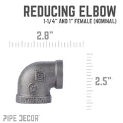 Vous avez du mal à raccorder deux tuyaux de diamètres différents ? Il vous faut un coude réducteur. Adaptez ce tuyau, plus ou moins grand, à votre prochain projet de tuyauterie. Créez un effet visuel unique en utilisant deux tuyaux de diamètres différents pour vos projets DIY. Nos raccords sont fabriqués en fonte malléable durable de qualité industrielle. 100 % authentiques, ils sont conçus pour résister à l'épreuve du temps. Vous reconnaîtrez les pièces et accessoires PIPE DECOR dès que vous les aurez en main. Beauté et élégance. Robustesse et style. De véritables accessoires industriels pour vos décorations et créations. Rien ne remplace. Des pièces et accessoires supplémentaires sont disponibles pour vos projets personnalisés et extensions. Plug and Play, selon vos envies.