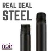 Donnez une nouvelle dimension à votre style industriel avec Noir de PIPE DECOR. Ces tuyaux en acier noir mat préfinis se démarquent véritablement. Le noir confère une touche sophistiquée à tout élément PIPE DECOR. Construisez de véritables pieds en tuyaux noirs avec nos tuyaux et raccords, ou créez un portant à vêtements noir pour votre maison ou votre espace de vente. Le noir s'harmonise également parfaitement avec des touches de laiton ou de galvanisation. Combinez toutes nos finitions de tuyaux pour un projet unique et personnalisé. La beauté du Noir se cache sous la surface. Contrairement aux produits galvanisés ou peints, notre procédé de finition permet à la couleur noire mate d'imprégner chaque tuyau, pour un son profond et durable. Ainsi, vous n'aurez jamais à vous soucier des éclats ou des rayures. Alors que nos tuyaux et raccords noirs standard sont recouverts d'une huile protectrice pendant le transport, notre gamme Noir est livrée prête à l'emploi : aucun nettoyage ni scellement n'est nécessaire. Elle est simple et nécessite peu d'entretien pour le bricoleur en déplacement.