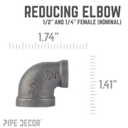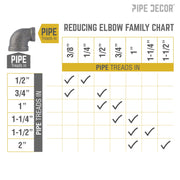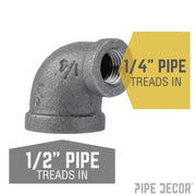 Vous avez du mal à raccorder deux tuyaux de diamètres différents ? Il vous faut un coude réducteur. Adaptez ce tuyau, plus ou moins grand, à votre prochain projet de tuyauterie. Créez un effet visuel unique en utilisant deux tuyaux de diamètres différents pour vos projets DIY. Nos raccords sont fabriqués en fonte malléable durable de qualité industrielle. 100 % authentiques, ils sont conçus pour résister à l'épreuve du temps. Vous reconnaîtrez les pièces et accessoires PIPE DECOR dès que vous les aurez en main. Beauté et élégance. Robustesse et style. De véritables accessoires industriels pour vos décorations et créations. Rien ne remplace. Des pièces et accessoires supplémentaires sont disponibles pour vos projets personnalisés et extensions. Plug and Play, selon vos envies.