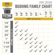 Optimisez la polyvalence de vos raccords standards grâce à nos bagues noires. Une bague convient à tout projet impliquant le raccordement d'un raccord de grande taille à un tuyau plus petit. Tirez le meilleur parti de vos créations DIY. Nos raccords sont fabriqués en fonte malléable durable de qualité industrielle. 100 % authentiques, ils sont conçus pour résister à l'épreuve du temps. Vous reconnaîtrez les pièces et accessoires PIPE DECOR dès que vous les aurez en main. Beauté et élégance. Robustesse et style. De véritables accessoires industriels pour vos décorations et créations. Rien ne remplace. Des pièces et accessoires supplémentaires sont disponibles pour vos projets personnalisés et extensions. Plug and Play, selon vos envies.