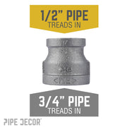 Ces raccords cylindriques permettent de raccorder deux tuyaux de diamètres différents. Un raccord réducteur permet d'allonger ou de rehausser des pieds de table, de tabouret de bar, des portants, etc., en reliant deux tuyaux ensemble. Nos raccords sont fabriqués en fonte malléable durable de qualité industrielle. 100 % authentiques, ils sont conçus pour résister à l'épreuve du temps. Vous reconnaîtrez les pièces et accessoires PIPE DECOR dès que vous les aurez en main. Beauté et élégance. Robustesse et style. De véritables accessoires industriels pour vos décorations et créations. Rien ne remplace. Des pièces et accessoires supplémentaires sont disponibles pour vos projets personnalisés et extensions. Plug and Play, selon vos envies.