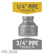 Ces raccords cylindriques permettent de raccorder deux tuyaux de diamètres différents. Un raccord réducteur permet d'allonger ou de rehausser des pieds de table, de tabouret de bar, des portants, etc., en reliant deux tuyaux ensemble. Nos raccords sont fabriqués en fonte malléable durable de qualité industrielle. 100 % authentiques, ils sont conçus pour résister à l'épreuve du temps. Vous reconnaîtrez les pièces et accessoires PIPE DECOR dès que vous les aurez en main. Beauté et élégance. Robustesse et style. De véritables accessoires industriels pour vos décorations et créations. Rien ne remplace. Des pièces et accessoires supplémentaires sont disponibles pour vos projets personnalisés et extensions. Plug and Play, selon vos envies.