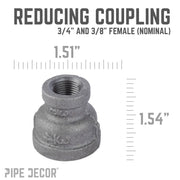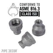Ces raccords cylindriques permettent de raccorder deux tuyaux de diamètres différents. Un raccord réducteur permet d'allonger ou de rehausser des pieds de table, de tabouret de bar, des portants, etc., en reliant deux tuyaux ensemble. Nos raccords sont fabriqués en fonte malléable durable de qualité industrielle. 100 % authentiques, ils sont conçus pour résister à l'épreuve du temps. Vous reconnaîtrez les pièces et accessoires PIPE DECOR dès que vous les aurez en main. Beauté et élégance. Robustesse et style. De véritables accessoires industriels pour vos décorations et créations. Rien ne remplace. Des pièces et accessoires supplémentaires sont disponibles pour vos projets personnalisés et extensions. Plug and Play, selon vos envies.