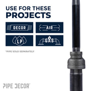 Ces raccords cylindriques permettent de raccorder deux tuyaux de diamètres différents. Un raccord réducteur permet d'allonger ou de rehausser des pieds de table, de tabouret de bar, des portants, etc., en reliant deux tuyaux ensemble. Nos raccords sont fabriqués en fonte malléable durable de qualité industrielle. 100 % authentiques, ils sont conçus pour résister à l'épreuve du temps. Vous reconnaîtrez les pièces et accessoires PIPE DECOR dès que vous les aurez en main. Beauté et élégance. Robustesse et style. De véritables accessoires industriels pour vos décorations et créations. Rien ne remplace. Des pièces et accessoires supplémentaires sont disponibles pour vos projets personnalisés et extensions. Plug and Play, selon vos envies.