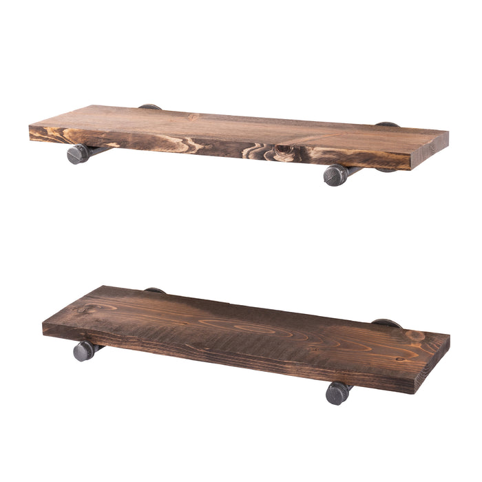 Embellissez votre espace avec un ensemble d'étagères en tuyaux industriels authentiques et en bois américain véritable. Nos étagères Pipe Decor sont composées de tuyaux industriels authentiques, de brides et de pin ponderosa issu de sources durables. Ces étagères robustes complètent parfaitement tout bar, bureau, garage ou espace de votre choix et s'adaptent à une variété de styles, du vintage au moderne. Nous avons apporté un soin particulier à l'assemblage de cet ensemble et tenons à vous assurer que vous obtenez un produit de qualité, fabriqué à partir de tuyaux et de pin américain véritable. Les planches de bois incluses mesurent 2,5 cm x 19 cm x 61 cm ; le kit comprend 2 étagères et 4 supports. Assemblage requis. Toutes les vis et chevilles nécessaires sont incluses.