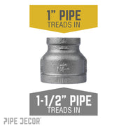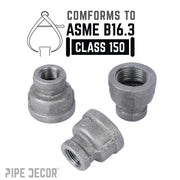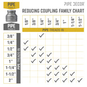 These cylindrical fittings are used to connect two pipes of different diameters. You can use a reducing coupling to add height or length to table legs, bar stool legs, clothing racks, and more by attaching two pipes together. Our fittings are made with durable, industrial-grade malleable iron. Fittings are 100% authentic and are made to stand the test of time. You will know PIPE DECOR parts and accessories when you hold them. Beauty and beast. Strength and style. These are real industrial fittings for your decorations and designs. Accept no substitutes. Extra pieces and accessories are available for your custom projects and expansions. Plug and play as desired.