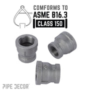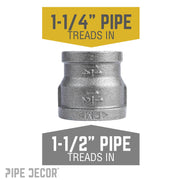 These cylindrical fittings are used to connect two pipes of different diameters. You can use a reducing coupling to add height or length to table legs, bar stool legs, clothing racks, and more by attaching two pipes together. Our fittings are made with durable, industrial-grade malleable iron. Fittings are 100% authentic and are made to stand the test of time. You will know PIPE DECOR parts and accessories when you hold them. Beauty and beast. Strength and style. These are real industrial fittings for your decorations and designs. Accept no substitutes. Extra pieces and accessories are available for your custom projects and expansions. Plug and play as desired.