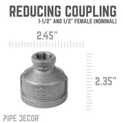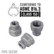 These cylindrical fittings are used to connect two pipes of different diameters. You can use a reducing coupling to add height or length to table legs, bar stool legs, clothing racks, and more by attaching two pipes together. Our fittings are made with durable, industrial-grade malleable iron. Fittings are 100% authentic and are made to stand the test of time. You will know PIPE DECOR parts and accessories when you hold them. Beauty and beast. Strength and style. These are real industrial fittings for your decorations and designs. Accept no substitutes. Extra pieces and accessories are available for your custom projects and expansions. Plug and play as desired.