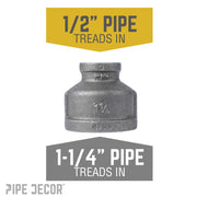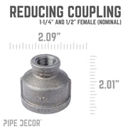 These cylindrical fittings are used to connect two pipes of different diameters. You can use a reducing coupling to add height or length to table legs, bar stool legs, clothing racks, and more by attaching two pipes together. Our fittings are made with durable, industrial-grade malleable iron. Fittings are 100% authentic and are made to stand the test of time. You will know PIPE DECOR parts and accessories when you hold them. Beauty and beast. Strength and style. These are real industrial fittings for your decorations and designs. Accept no substitutes. Extra pieces and accessories are available for your custom projects and expansions. Plug and play as desired.