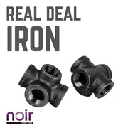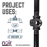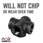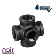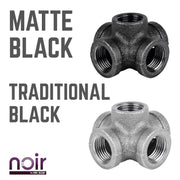 Take your industrial style to the next level with Noir by PIPE DECOR. These prefinished matte black iron fittings truly stand out from the crowd. Noir lends a sophisticated vibe to any PIPE DECOR piece. A PIPE DECOR exclusive, this 5-way fitting connects 5 pipes together. Use one as the center of a pipe light fixture or for other creative projects. The sky’s the limit! Combine any of our fitting finishes for a one-of-a-kind project that’s unique to you. The beauty of Noir goes below the surface. Unlike electroplated or painted items, our finishing process causes the matte black color to permeate each fitting for a deep tone that will last a lifetime. That means you never have to worry about chips or scratches. While our standard black pipes and fittings are coated in a protective oil during transit, our Noir line comes completely ready to use—no need to clean and seal. It’s laid-back and low maintenance for the DIYer on the go.Take your industrial style to the next level with Noir by PIPE DECOR. These prefinished matte black iron fittings truly stand out from the crowd. Noir lends a sophisticated vibe to any PIPE DECOR piece. A PIPE DECOR exclusive, this 5-way fitting connects 5 pipes together. Use one as the center of a pipe light fixture or for other creative projects. The sky’s the limit! Combine any of our fitting finishes for a one-of-a-kind project that’s unique to you. The beauty of Noir goes below the surface. Unlike electroplated or painted items, our finishing process causes the matte black color to permeate each fitting for a deep tone that will last a lifetime. That means you never have to worry about chips or scratches. While our standard black pipes and fittings are coated in a protective oil during transit, our Noir line comes completely ready to use—no need to clean and seal. It’s laid-back and low maintenance for the DIYer on the go.