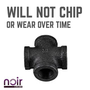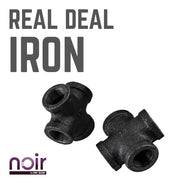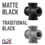 Take your industrial style to the next level with Noir by PIPE DECOR. These prefinished matte black iron fittings truly stand out from the crowd. Noir lends a sophisticated vibe to any PIPE DECOR piece. A cross is a cross-shaped four-way fitting that allows you to connect four pipes, each at a 90-degree angle from the next. Combine any of our fitting finishes for a one-of-a-kind project that’s unique to you. The beauty of Noir goes below the surface. Unlike electroplated or painted items, our finishing process causes the matte black color to permeate each fitting for a deep tone that will last a lifetime. That means you never have to worry about chips or scratches. While our standard black pipes and fittings are coated in a protective oil during transit, our Noir line comes completely ready to use—no need to clean and seal. It’s laid-back and low maintenance for the DIYer on the go.Take your industrial style to the next level with Noir by PIPE DECOR. These prefinished matte black iron fittings truly stand out from the crowd. Noir lends a sophisticated vibe to any PIPE DECOR piece. A cross is a cross-shaped four-way fitting that allows you to connect four pipes, each at a 90-degree angle from the next. Combine any of our fitting finishes for a one-of-a-kind project that’s unique to you. The beauty of Noir goes below the surface. Unlike electroplated or painted items, our finishing process causes the matte black color to permeate each fitting for a deep tone that will last a lifetime. That means you never have to worry about chips or scratches. While our standard black pipes and fittings are coated in a protective oil during transit, our Noir line comes completely ready to use—no need to clean and seal. It’s laid-back and low maintenance for the DIYer on the go.