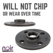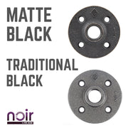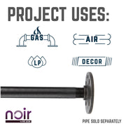 Take your industrial style to the next level with Noir by PIPE DECOR. These prefinished matte black iron fittings truly stand out from the crowd. Noir lends a sophisticated vibe to any PIPE DECOR piece. Build true black shelf brackets to pair with our RESTORE wood shelves or add black flanges to the ends of your pipe table legs. Noir also looks great with brass or galvanized accents. Combine any of our fitting finishes for a one-of-a-kind project that’s unique to you. The beauty of Noir goes below the surface. Unlike electroplated or painted items, our finishing process causes the matte black color to permeate each fitting for a deep tone that will last a lifetime. That means you never have to worry about chips or scratches. While our standard black pipes and fittings are coated in a protective oil during transit, our Noir line comes completely ready to use—no need to clean and seal. It’s laid-back and low maintenance for the DIYer on the go.