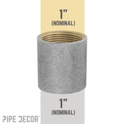 Merchant couplings are machined from rolled steel. These are the only fittings we sell that are made of the same industrial steel as our pipes. They are manufactured to the same specs as all our other fittings but with the added benefit of steel. Hydrostatically tested, these merchant couplings are great for decor as well as plumbing applications in air, gas, and liquid propane. Each coupling joins together two pipes of the same diameter for a strong and sturdy extension. You will know PIPE DECOR parts and accessories when you hold them. Beauty and beast. Strength and style. These are real industrial fittings for your decorations and designs. Accept no substitutes. Extra pieces and accessories are available for your custom projects and expansions. Plug and play as desired.