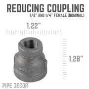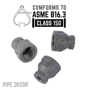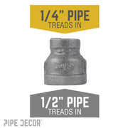 These cylindrical fittings are used to connect two pipes of different diameters. You can use a reducing coupling to add height or length to table legs, bar stool legs, clothing racks, and more by attaching two pipes together. Our fittings are made with durable, industrial-grade malleable iron. Fittings are 100% authentic and are made to stand the test of time. You will know PIPE DECOR parts and accessories when you hold them. Beauty and beast. Strength and style. These are real industrial fittings for your decorations and designs. Accept no substitutes. Extra pieces and accessories are available for your custom projects and expansions. Plug and play as desired.