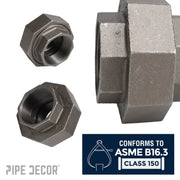 Add an industrial edge to your DIY projects. The union allows for sophisticated pipe design by enabling you to create a perfect loop, as seen in our Loop coffee table. Without the union, it would be impossible to fully connect a loop of pipe. Our fittings are made with durable, industrial-grade malleable iron. Fittings are 100% authentic and are made to stand the test of time. You will know PIPE DECOR parts and accessories when you hold them. Beauty and beast. Strength and style. These are real industrial fittings for your decorations and designs. Accept no substitutes. Extra pieces and accessories are available for your custom projects and expansions. Plug and play as desired.