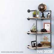 Pipe Decor's 3-Tier wall mounted shelf is a statement piece for any wall in your home. Our wall mounted shelving unit utilizes authentic steel plumbing pipe and malleable cast iron fittings creating a true vintage look and feel. Reminiscent of the industrial age, the framework for this unit lends itself to a multitude of decors, Industrial Farmhouse, Victorian Vintage, Rustic, Retro and Modern. This piece will bring beauty and function to any room in your home, retail or commercial space. You will know Pipe Decor parts and accessories when you hold them. Beauty and beast. Strength and style. This is real industrial pipe for your creative design needs. Accept no substitutes. All our pipe and fittings come coated in a light industrial grease to prevent rusting. Clean and seal each piece, before assembly, to ensure that they stay rust-free. After cleaning, seal the pipe with polyurethane spray to protect it from rust and scratches.