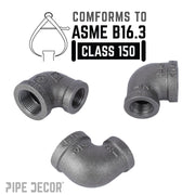 Having trouble connecting two pipes of different diameters? You need a reducing elbow. Fit that bigger or smaller pipe into your next pipe project. Create a unique visual effect by using two different pipe sizes in you DIY projects. Our fittings are made with durable, industrial-grade malleable iron. Fittings are 100% authentic and are made to stand the test of time. You will know PIPE DECOR parts and accessories when you hold them. Beauty and beast. Strength and style. These are real industrial fittings for your decorations and designs. Accept no substitutes. Extra pieces and accessories are available for your custom projects and expansions. Plug and play as desired.