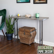 Natural variations and a unique distressed finish from solid end-grain wood, in conjunction with high quality grey industrial-grade malleable iron fittings and steel pipe, makes our RESTORE wood collection feel and look refined, industrial, and rustic all in one. Each piece of handcrafted wood tells a story of an ethically sourced product carefully obtained in North America through responsible forestry efforts that employ low impact logging methods. RESTORE by PIPE DECOR takes pride in providing distinctive, one-of-a-kind pieces that showcase both sophistication and sustainability, providing a product that seamlessly fits into your home. The wire-brushed texture and hand-stained technique offers the appearance of an artfully weathered product that brings out the wood's natural beauty. Natural variations, such as knotting, grain, and color make every piece of wood unique. Our finishing process enhances these existing characteristics - each unique knot becomes a beautiful accent, while the natural wood grain offers organic movement. Pillowed edges accentuate the final version of this artisanal console table. Assembly is required for all items. All necessary screws are included. Full kit comes with a 1-Year Limited Manufacturer's Guarantee.