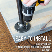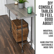 - Each console table kit contains one 48 in. x 16 in. x 1.25 in. wood tabletop, featuring 3 pillowed edges and one live, organic edge, plus one set of "H" pipe legs