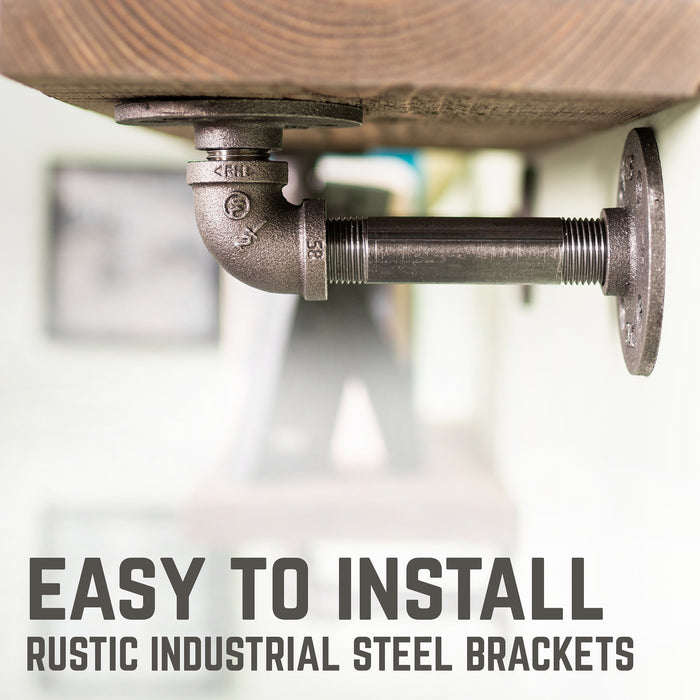 Accent your space with a genuine industrial pipe and real American wood shelf set. Our Pipe Decor shelves are comprised of genuine industrial pipes, flanges and sustainably-sourced Ponderosa pine lumber. These heavy-duty shelves make an excellent complement to any bar, den, garage or space of your choosing and fit across a spectrum of vintage to modern design styles. We have taken extra care in assembling this set and want you to know that you are getting a quality product made with real pipe and genuine USA pine. The included wooden boards measure 1 in. x 7.5 in. x 24 in., the kit includes 2-shelves and 4-brackets. Assembly is required. All necessary screws and anchors are included.