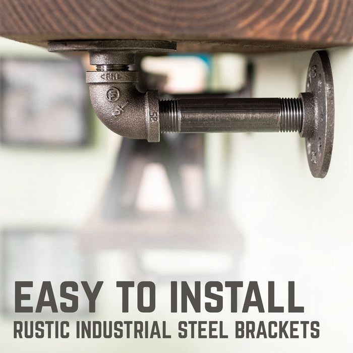 Accent your space with a genuine industrial pipe and real American wood shelf set. Our Pipe Decor shelves are comprised of genuine industrial pipes, flanges and sustainably-sourced Ponderosa pine lumber. These heavy-duty shelves make an excellent complement to any bar, den, garage or space of your choosing and fit across a spectrum of vintage to modern design styles. We have taken extra care in assembling this set and want you to know that you are getting a quality product made with real pipe and genuine USA pine. The included wooden boards measure 1 in. x 7.5 in. x 24 in., the kit includes 2-shelves and 4-brackets. Assembly is required. All necessary screws and anchors are included.