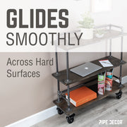 Transform any piece of pipe furniture into a mobile masterpiece with our 4-pack of floor casters. No tools are necessary for installation; simply screw the cap onto the end of your pipe project and you’re ready to go. These caster wheels have a 360-degree swivel supported by sturdy ball bearings, so you can smoothly maneuver into tight spaces with no squeaking noise and no floor scuffing. Create rolling work benches, tool carts, bar carts, storage racks, side tables, and more. The sturdy metal toe brake can withstand foot pressure while the ribbed pedal provides extra grip, allowing you to lock and unlock it with ease.
